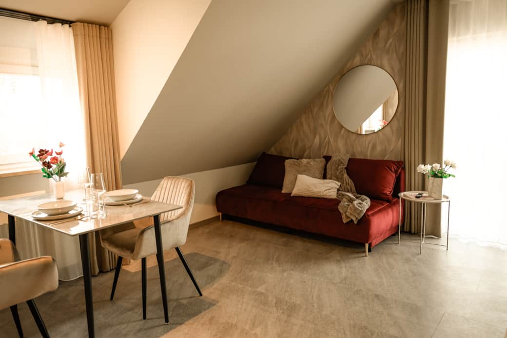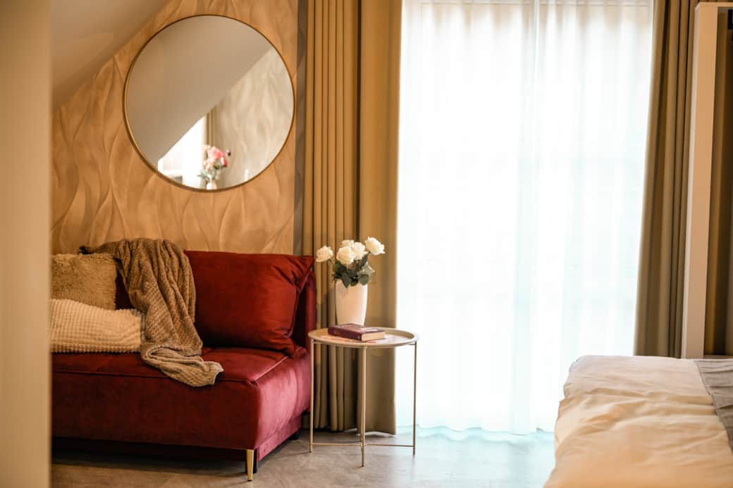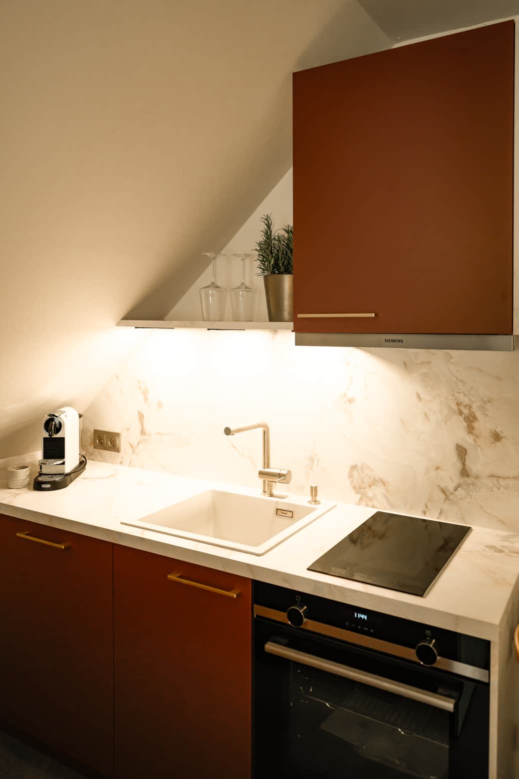Fahren Sie die Auffahrt zum Gebäude hoch und parken Sie in den gekennzeichneten Flächen (kostenlos).